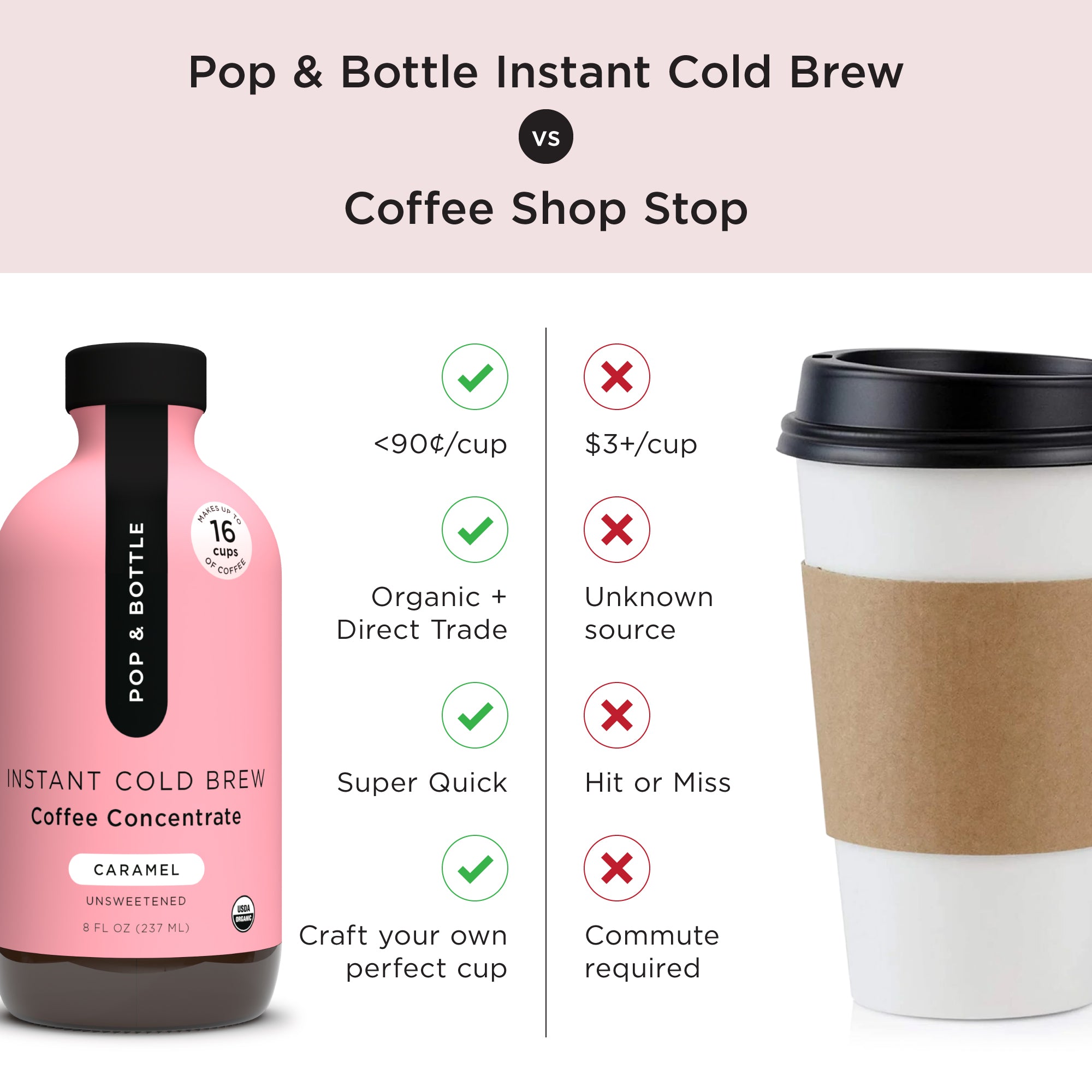 Less is more thanks to Pop & Bottle Instant Cold Brew. With a subtle caramel flavor and smooth finish. this little bottle works hard so you don’t have to. Whether you take your coffee iced. hot. creamy. sweetened. or pure. Caramel Instant Cold Brew lets you enjoy coffee your way in one simple step.