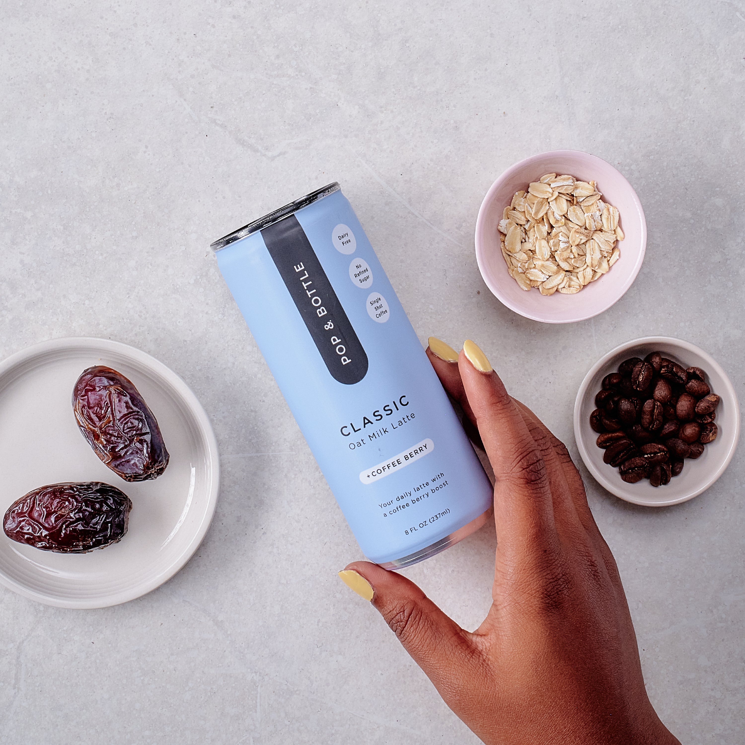 A delicious and restorative classic latte. Made with fair-trade. organic coffee. pure oat milk. a hint of sweetness from dates. and a proprietary blend of antioxidants from coffee berry for a wellness boost. This is your daily latte with benefits.