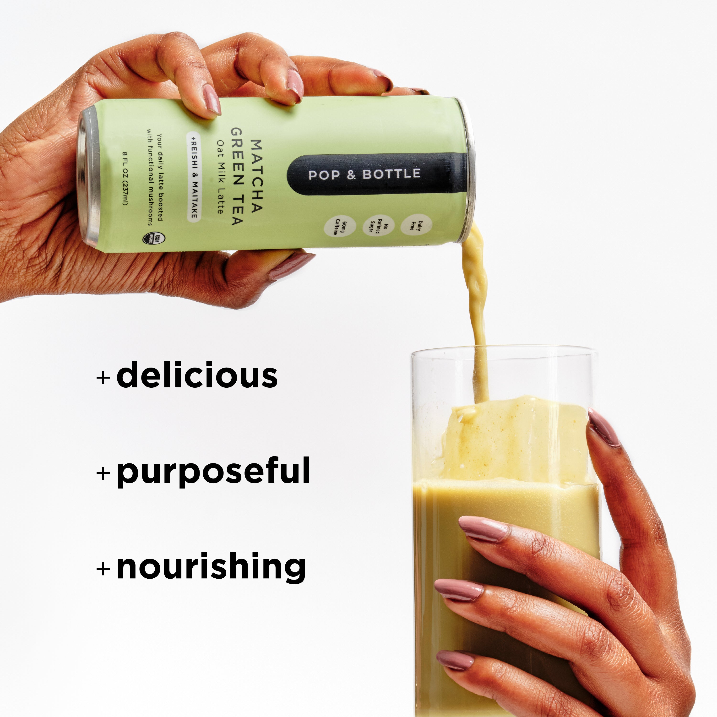 An immune-boosting and stress-reducing matcha latte. Created with our house-made oat milk. ceremonial grade matcha. a hint of sweetness from dates. and boosted with functional mushrooms to help you reduce your stress levels and support your immune system. This is your daily latte with benefits.